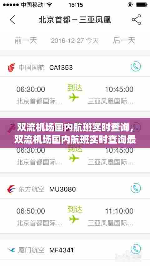 随着我国航空事业的蓬勃发展,成都双流国际机场已成为西南地区最重要的航空枢纽之一。为了方便旅客及时了解国内航班的动态,双流机场提供了实时查询服务。本文将详细介绍如何使用双流机场国内航班实时查询系统,帮助旅客轻松获取航班信息。