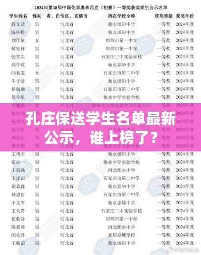 根据教育部门的安排,孔庄地区保送学生名单已经公示,这些学生通过学业成绩、综合素质、特长才艺等多方面的考核,最终脱颖而出,名单公示是保障公平、公正的重要环节,旨在让公众了解保送生的选拔过程,增强教育透明度。